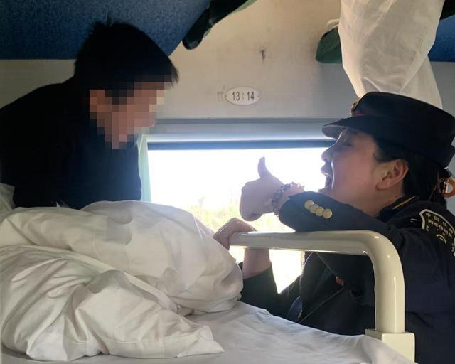 14:37,列车工作人员连续地毯式排查了10个车厢也没发现男孩踪影,此时已过去30分钟。“ 11号卧铺车厢12号上铺发现了疑似走失的男孩,旁边没有大人看护,赶快过来看一下。”何娜的对讲机里传来同事的呼唤。她赶到现场时,小男孩从被窝里探出半个头,何娜轻声安抚:“小朋友,阿姨有糖果和鸡腿,跟你一起玩好不好?”小男孩嘟囔着 “睡觉,鸡腿……”,见小男孩状态略显异常,她便抱了下来,根据贺女士先前提供的照片,确认是走失的孩子,随后带至餐车照顾。
